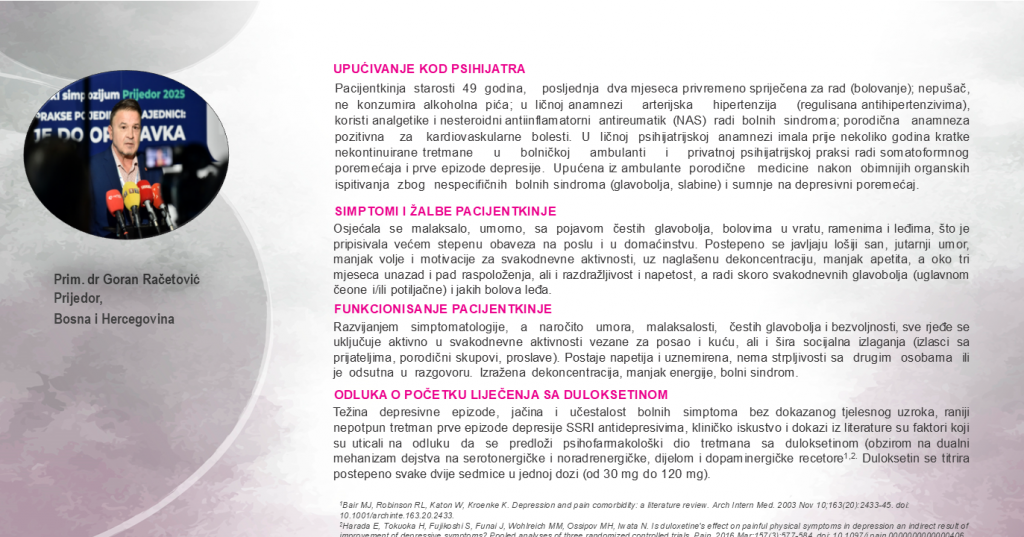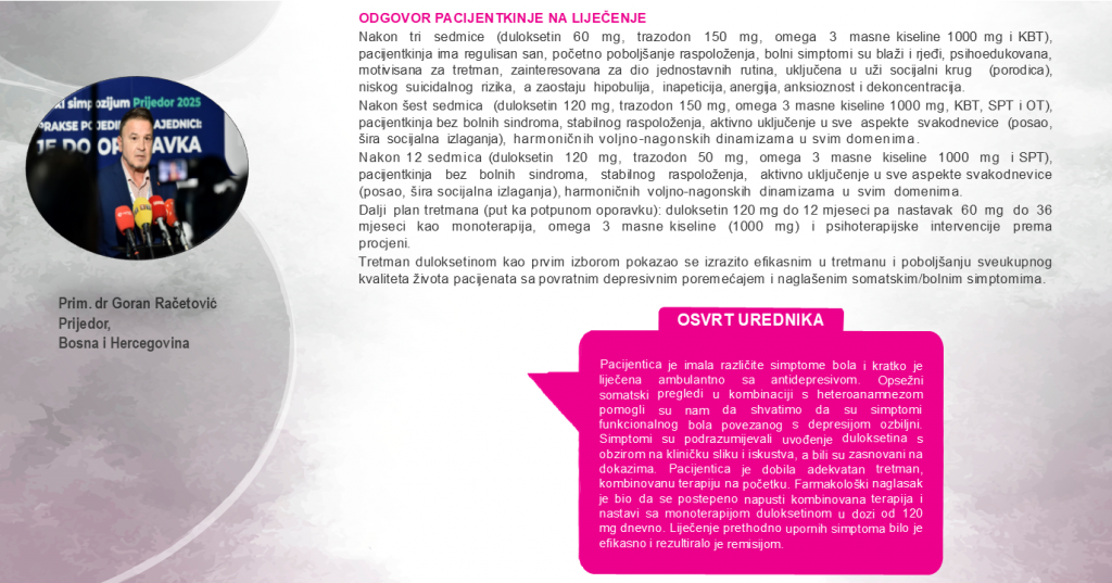 Opis terapijskog pristupa i odgovor pacijentice na liječenje duloksetinom
